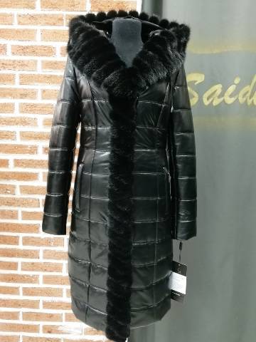 Артикул Eagle 1706-D Женская куртка с отделкой из норки. Верхняя ткань- экокожа. Утеплитель: холофайбер. Длина 95 см. Цвет: чёрный. Размер: 42, 44. Цена: 24500 рублей. Цена со скидкой: 9900 рублей.